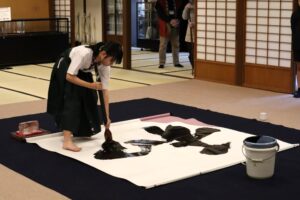 式では、山口高校書道部2年・大村和那さんによる揮毫(きごう)も開催。